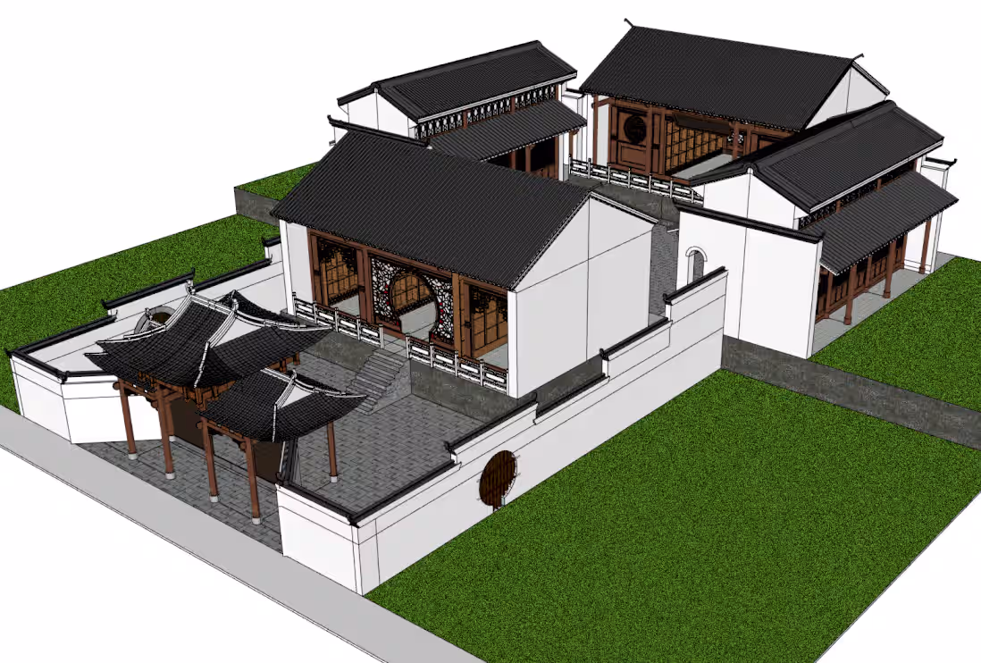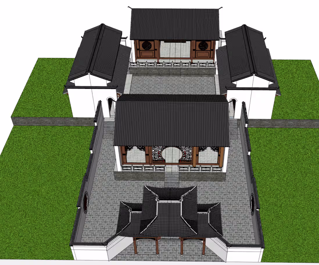 重檐祠堂SU模型、高台建筑、中式古建设计、院落式宗祠